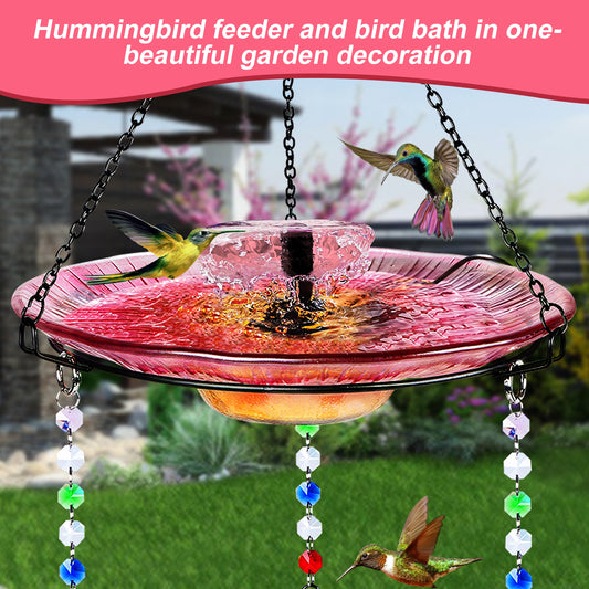 Headak Life Hummingbird Feeder and Bird Bath for Outdoors 2-in-1 for Small Birds - Hummingbird Bath Fountain with 3 Red Feeder Pots - Hanging Solar Bird Bath Fountains