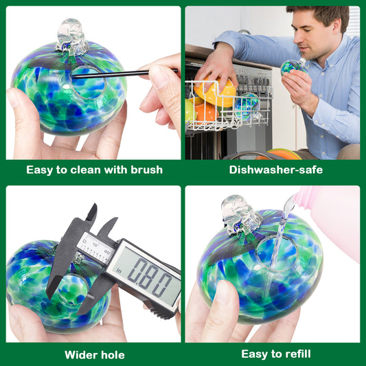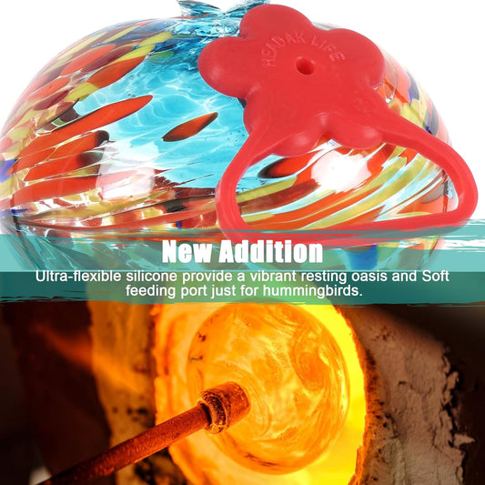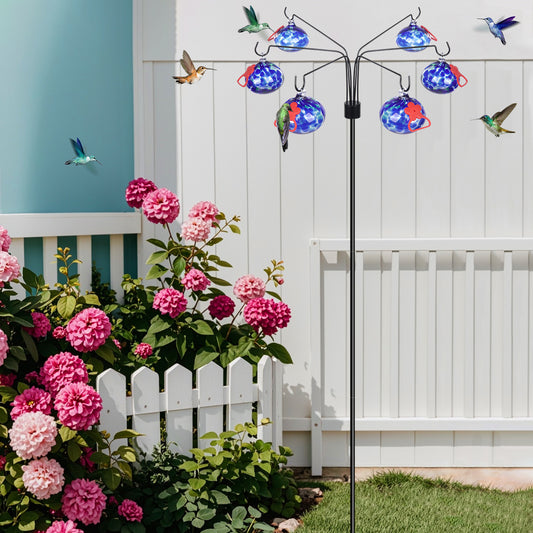 Hand Blow Glass Hummingbird Feeders for Outdoors with Shepherd Hook