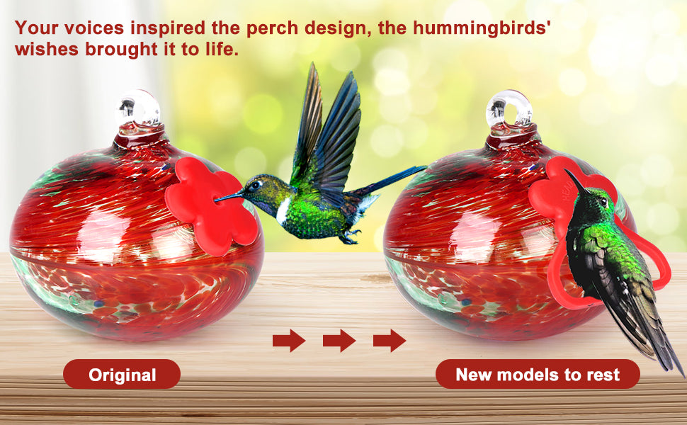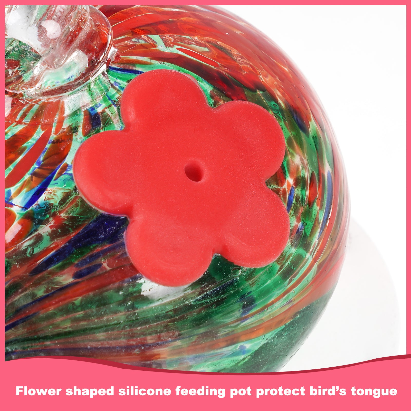Single hand blown glass hummingbird feeder with 2 silicone flowers(Red Phoenix Tail)
